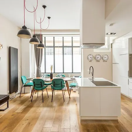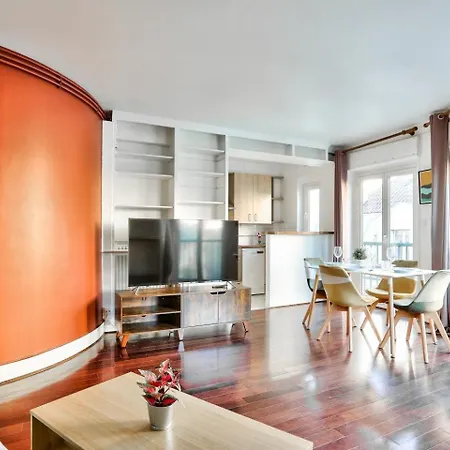 This 6-room apartment lies in the Belleville district and offers swift access to Parc de Belleville, which is 0.4 miles away. About 10 minutes by foot from Menilmontant subway station, the apartment is also only a few steps from Fresque Avoir la Corde au Cou. The accommodation is 1.4 miles from Marche des Enfants Rouges.